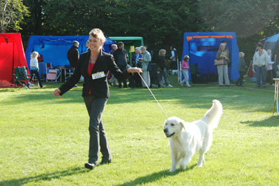 Hundutställning I ringen står domaren och ger skriftlig kritik till samtliga hundar. Det som bedöms är bland annat tillgänglighet, rörelser och hur rastypisk din hund är. Beroende på vilken kvalité som domaren tycker att din hund håller delar hon eller han ut band i olika kulörer där de bästa får rött band det vill säga en etta. De som inte håller måttet får gå ut ur ringen medan de bästa hundarna tävlar mot varandra i de olika klasser som finns. Domaren delar ut hederspriser, certifikat (som man behöver tre av för att bli utställningschampion), certifikatkvalité samt CACIB (internationellt cert) om det är en internationell utställning. Den hund som är allra bäst blir Bäst i rasen och finns det flera raser (vilket oftast är fallet) på utställningen blir den som är finast i gruppen Bäst i gruppen och den som är av allra bästa kvalité blir Best in show. För de som föder upp valpar är utställningarna mycket viktiga eftersom de hjälper dem att få fram avelsdjur som är så rastypiska som möjligt.